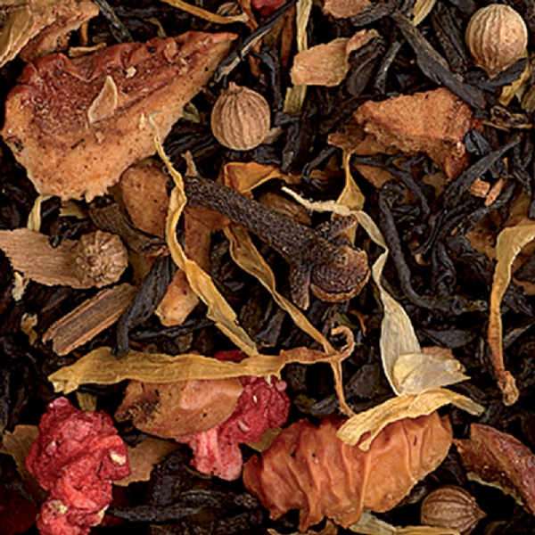ترکیبات: چای سیاه هندی آسام، دارچین، گشنیز، میخک و تکههای سیب، با عطر گرم و دلانگیز ادویهجات. آروما: ادویهای رنگ: کهربایی تیره مایل به قرمز طعم:غنی، ادویهای. مناسب به همراه انواع کیکها